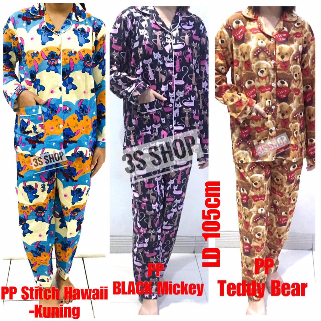 Baju Tidur Dewasa Piyama Panjang Pp Katun Jepang Kitty Teddy Bear