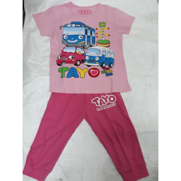 Pakaian Setelan Baju Tidur Anak Perempuan Karakter Tayo Pink