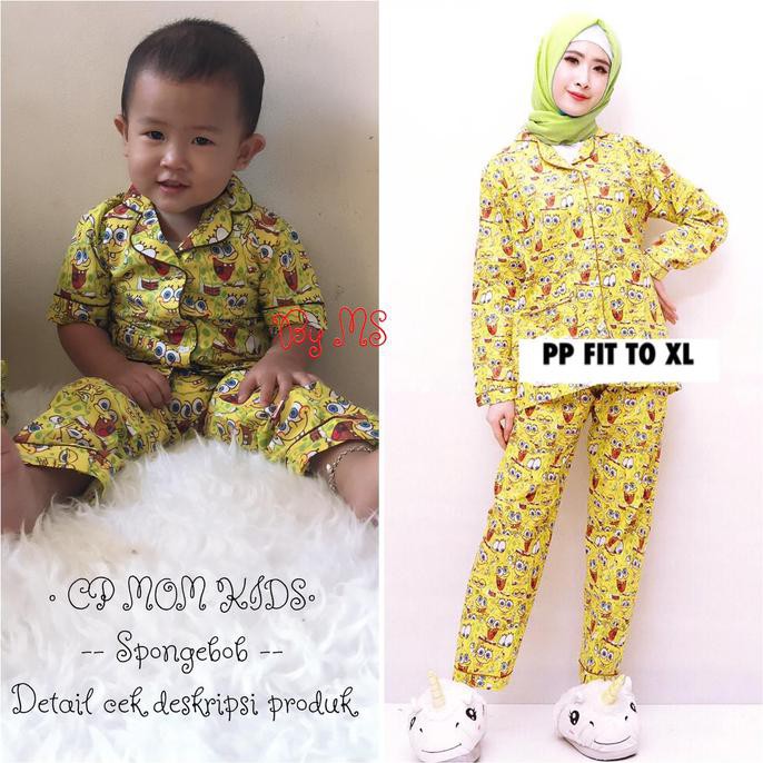 Set Baju Tidur Piyama Couple Ibu Anak Motif Spongebob Melody