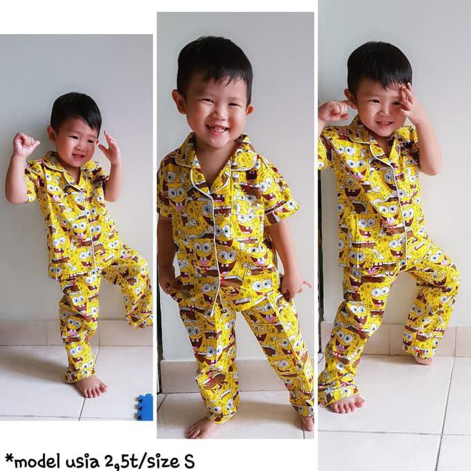 Piyama Anak Spongebob Setelan Baju Tidur Bayu Balita Lucu Karakter