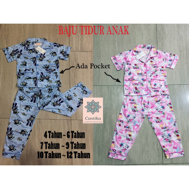 Piyama Katun 4 12 Tahun Motif Kartun Baju Tidur Anak