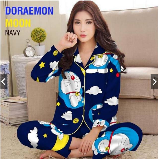 Baju Tidur Pyama Doraemon Dewasa Xl Varian Warna Navy Blue