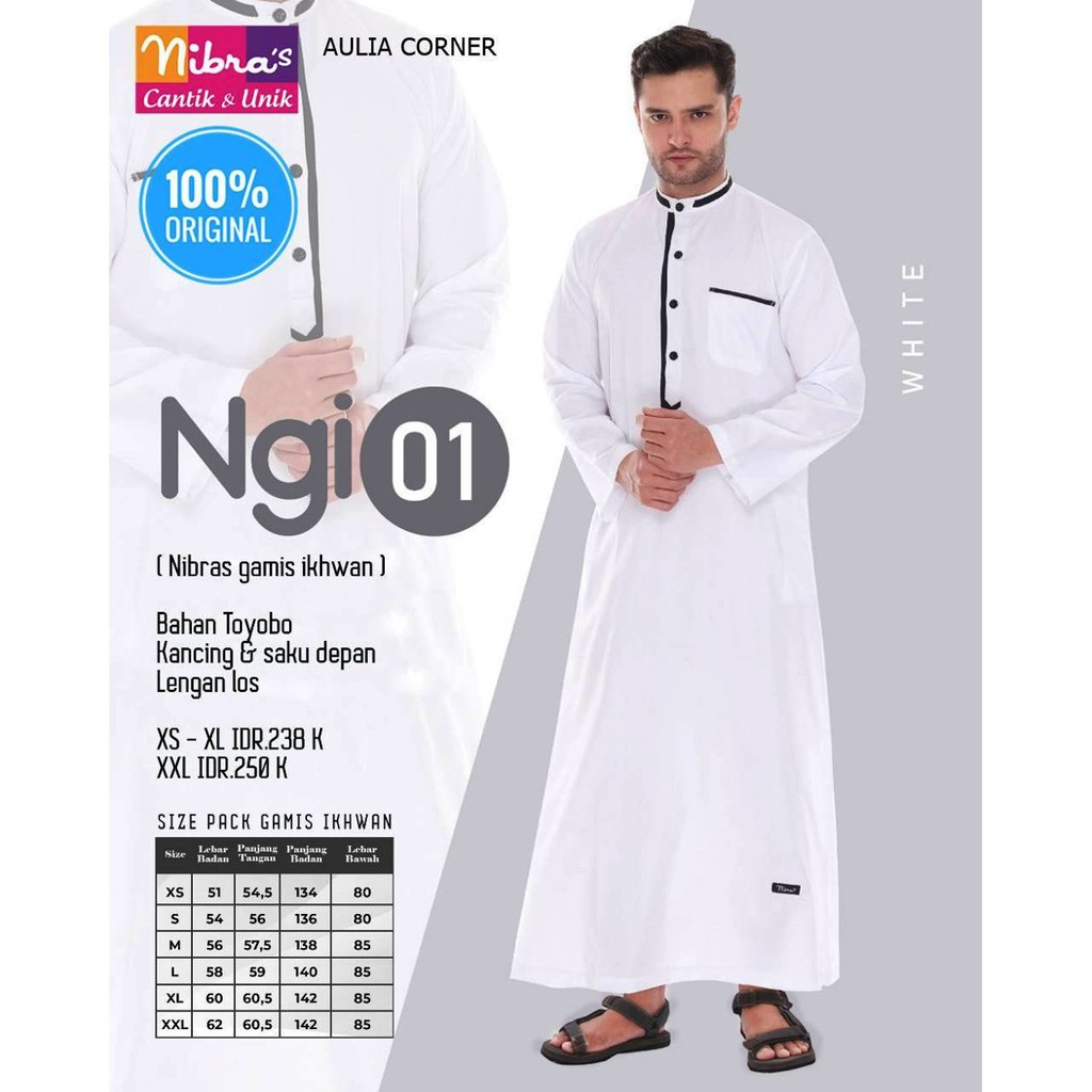 Baju Muslim Gamis Pria Terbaru Nibras Ngi 01 White Original Busana