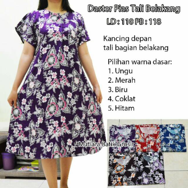 Daster Pias Besar Bahan Santung Tebaladem Ada Kancing Depan Tali