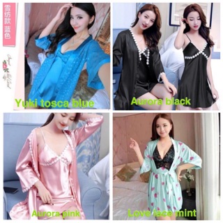 Jual Baju Tidur Kimono 102 Piyama Satin Set Wanita Seserahan