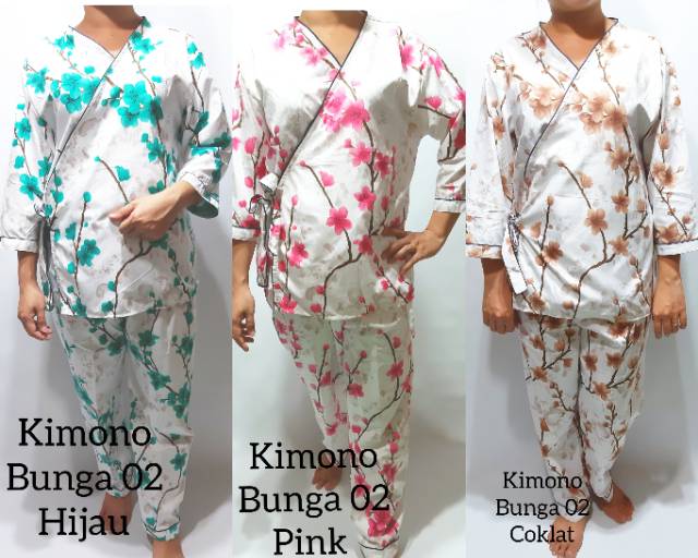 Stelan Baju Tidur Kimono Bunga Panjang Shopee Indonesia