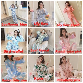 Senarai Harga Female Milk Silk Pyjamas Long Sleeve Sleepwear Baju