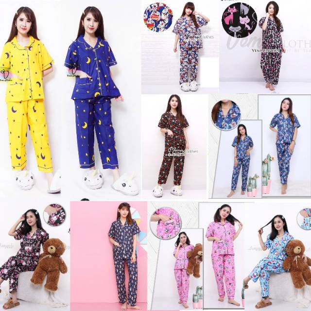 Termurah Baju Tidur Piyama Dewasa Cp Lengan Pendek Katun