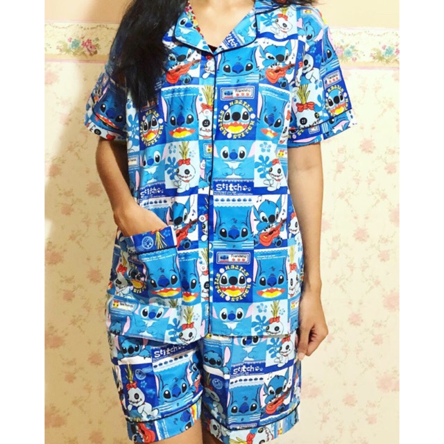 Jual Baju Tidur Piyama Stitch Dewasa Cp Lengan Pendek Wanita Katun