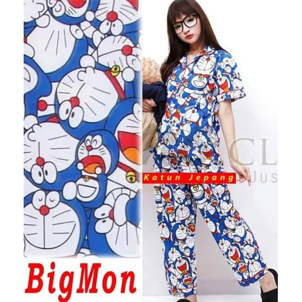 Doraemon Moon Baju Tidur Piyama Katun Jepang Cp Xl Dan Xxl Size