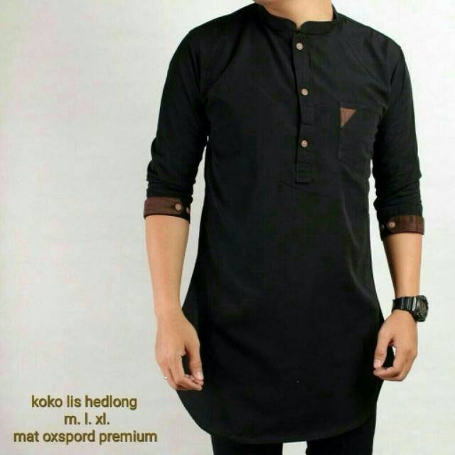 Jual Samed Baju Koko Pria Lengan Panjang Baju Muslim Cowok Hitam