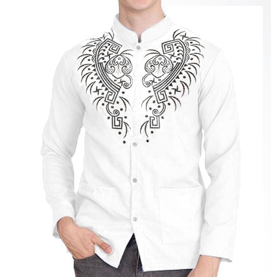 Baju Koko Putih Motif Kombinasi Hitam Kemeja Muslim Pria