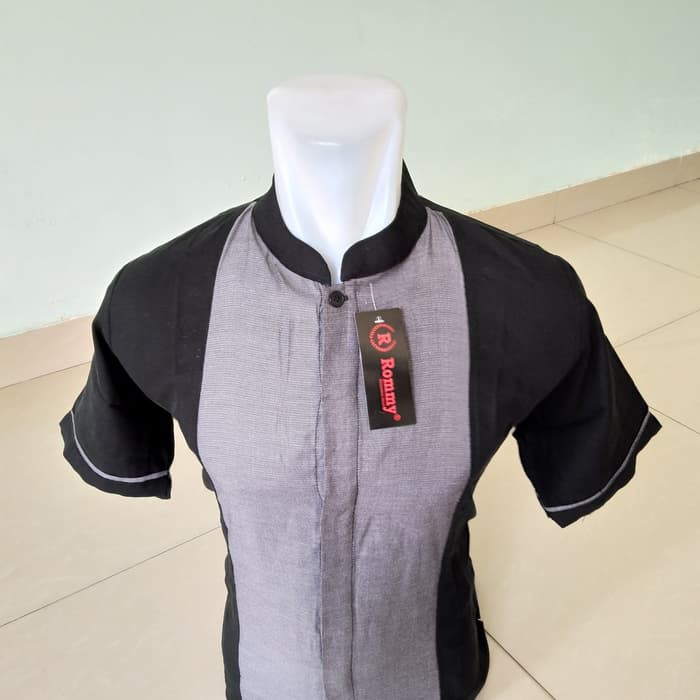 Kemeja Baju Koko Muslim Pria Rommy Hitam Putih Kombinasi