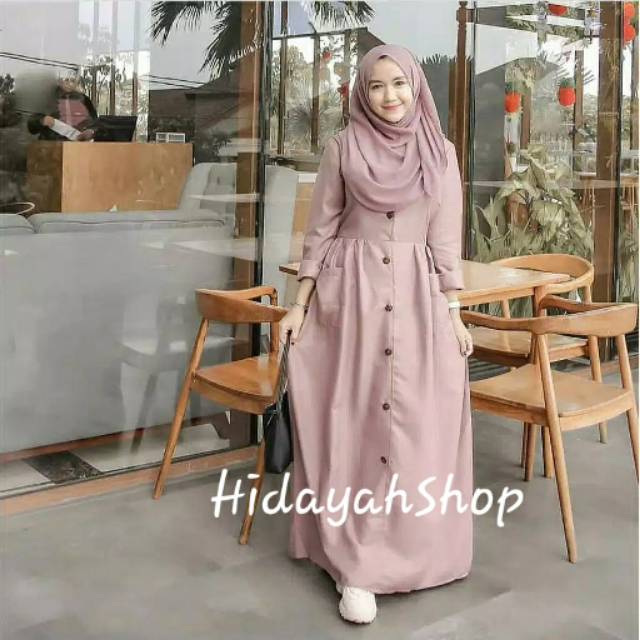 Gamis Wanita Muslim Polos Dress Cewek Muslim Terbaru Kancing