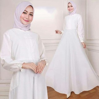 Nisa Sabyan Maxi Emy Putih Baju Gamis Polos Wanita Terbaru Busana