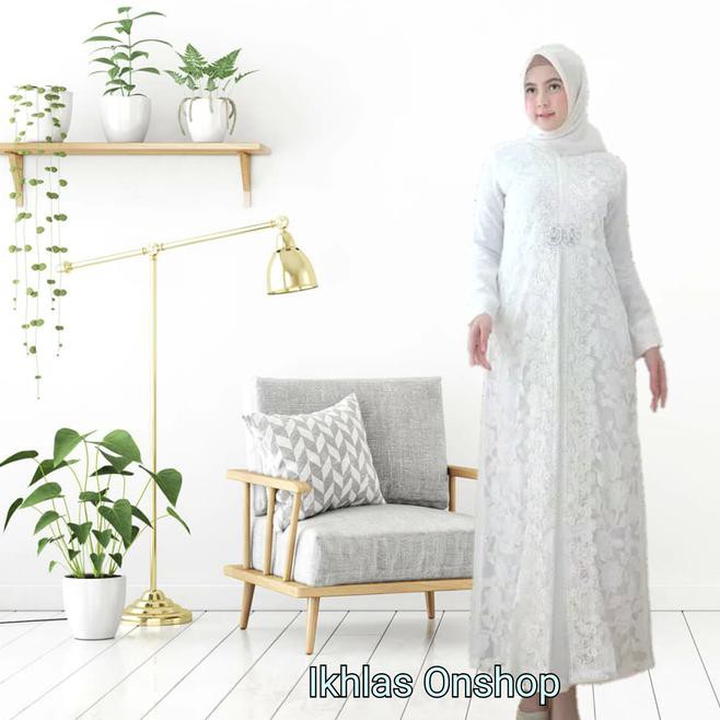 Jual Baju Pesta Muslim Gamis Putih Mewah Elegan Brokat Dan Silk