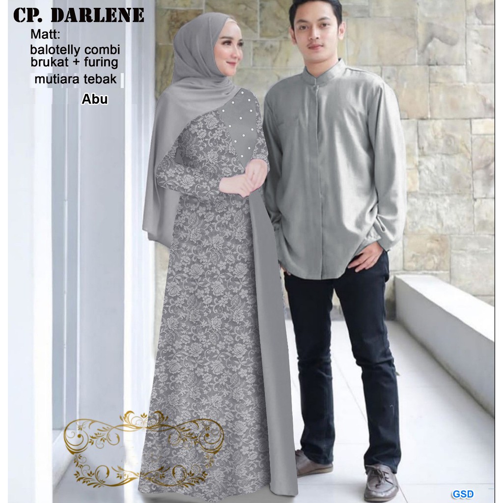 Cp Darlene Couple Muslim Gamis Syari Brokat Kombi Mutiara Kemeja