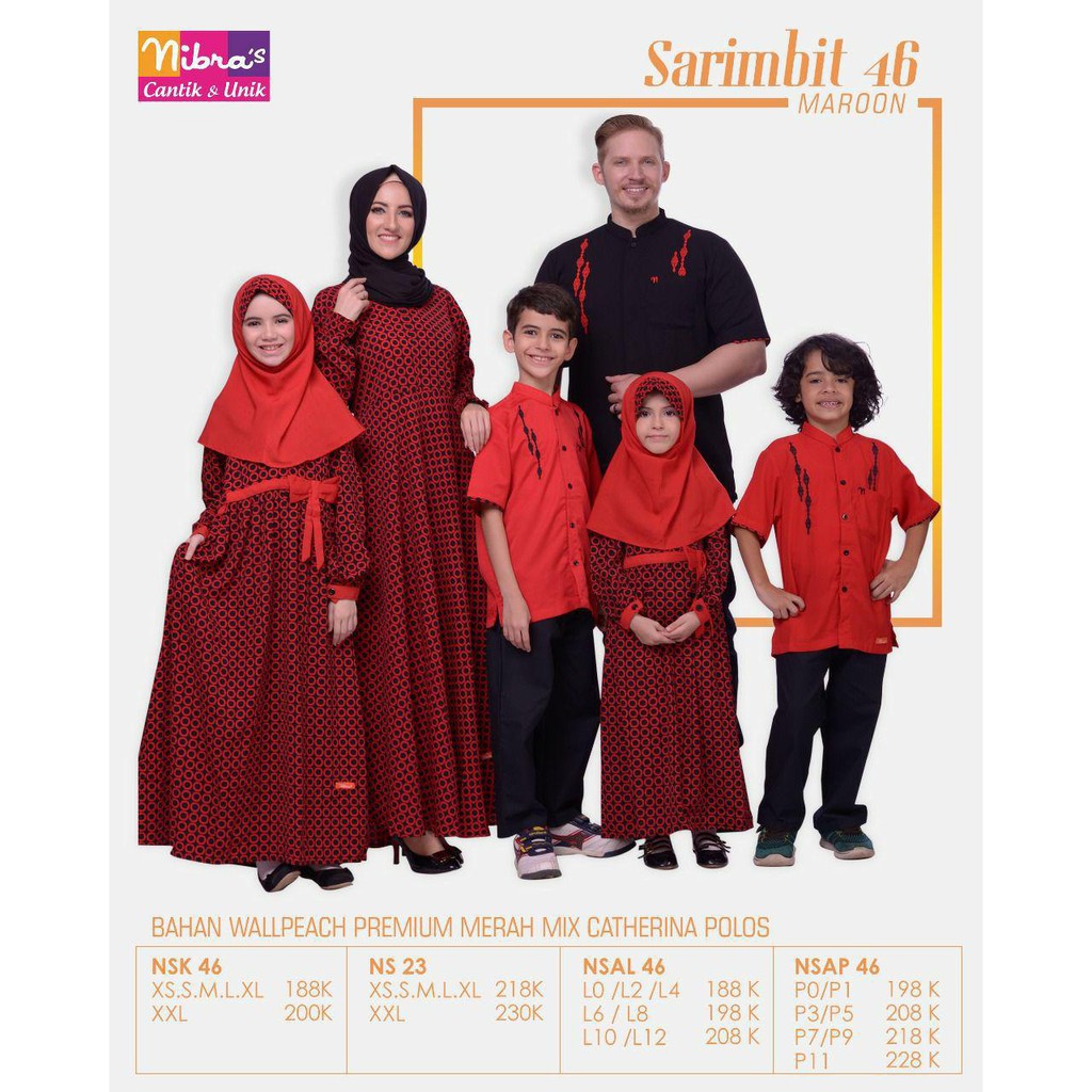 Jual Busana Muslim Sarimbit Keluarga Marun Nibras Sarkel 30 Marun
