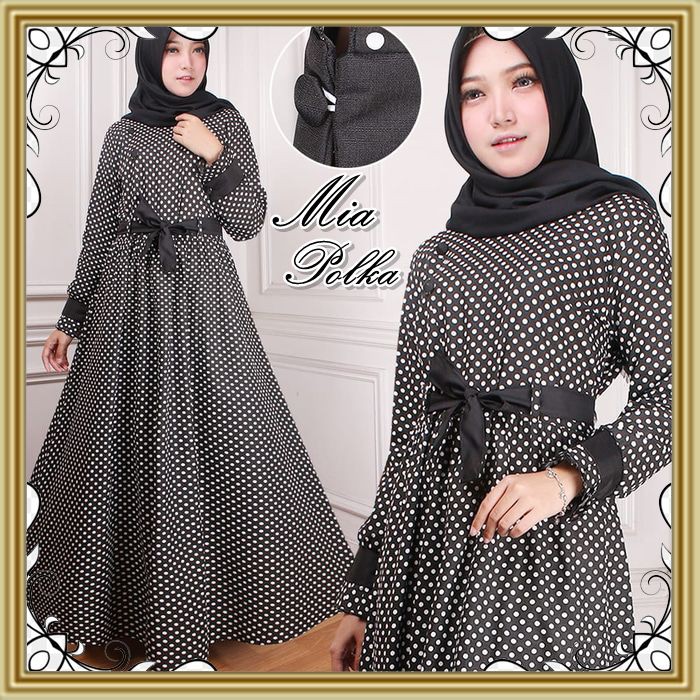 2 Gamis Muslim Mia Polka Maxi Gamis Baju Muslim Wanita Katun
