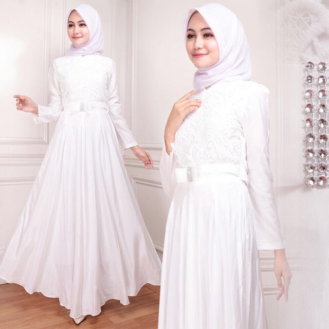Jual Maxi Wanita Murah Baju Muslim Remaja Warna Putih Real Pict