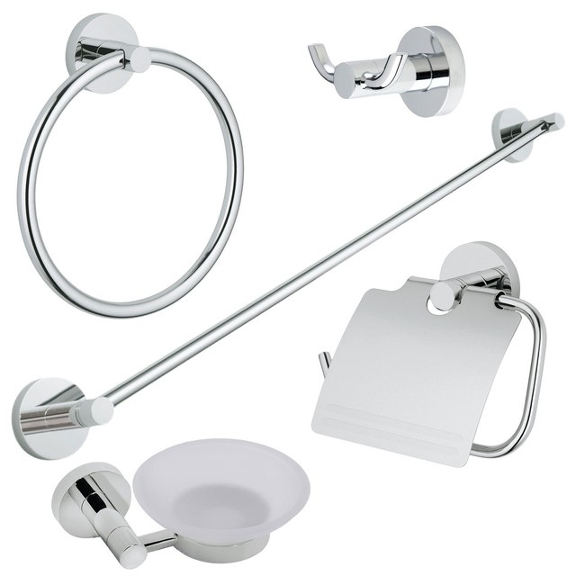 Round Modern Style Bathroom Accessories Set Chrome Finish Bath