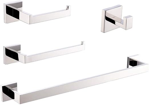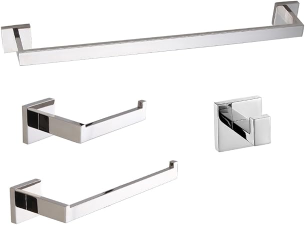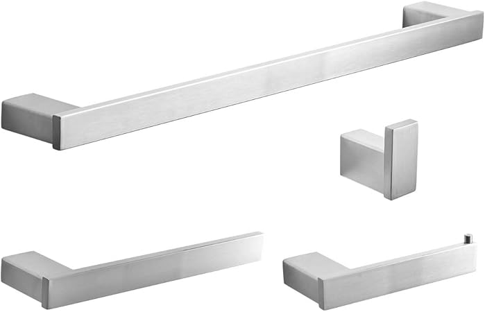 Bigbig Home 4pcs Bathroom Hardware Set Modern Square Style Sus 304