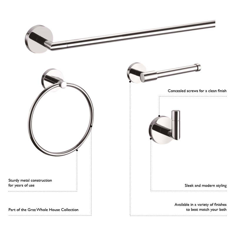 Chrome Modern Bath Accessories Towel Bar Ring Toilet Bathroom