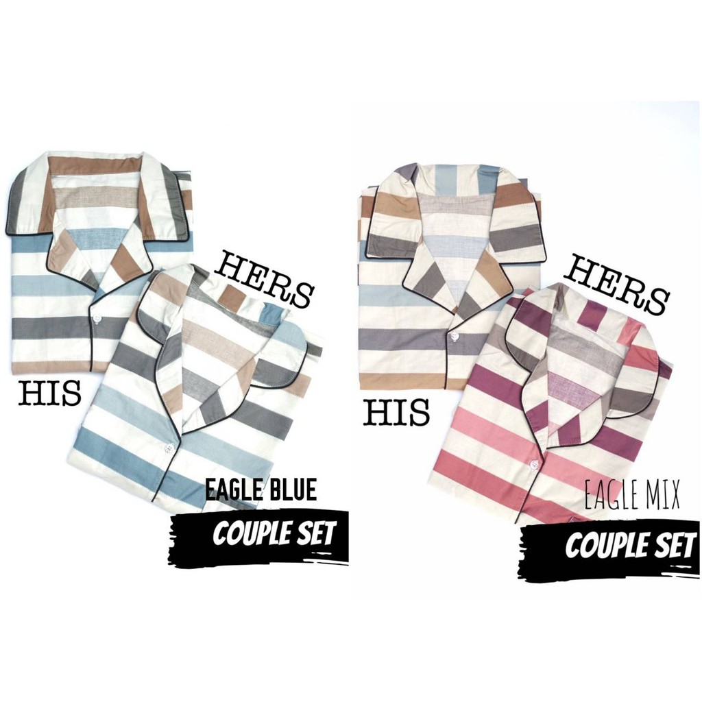 Piyama Baju Tidur Couple Katun Motif Garis Eagle Blue Pink