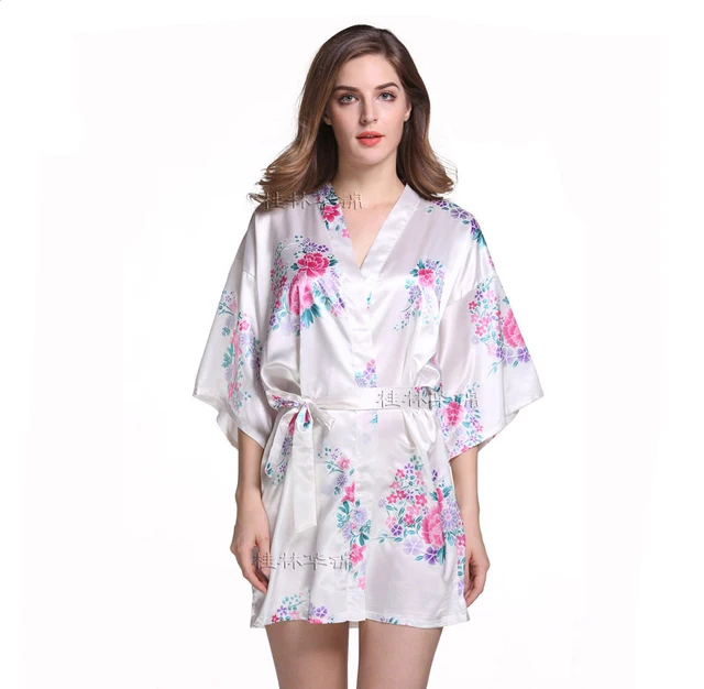 Wanita Elegan Satin Sutra Jubah Set Setengah Lengan Jubah Mandi
