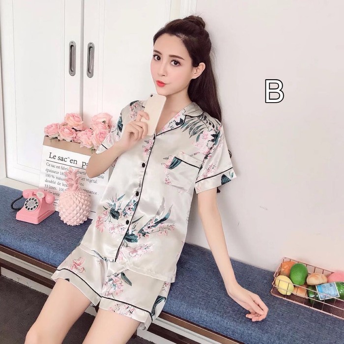 Grosir Baju Tidur Wanita Piyama Pendek Silk Sleepwear Cewek B1602