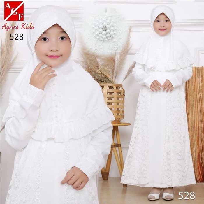 Agnes Gamis Putih Anak Perempuan Baju Muslim Syari Anak Lebaran
