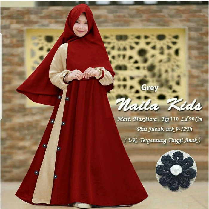 Diskon Gamis Nana Kids Maroon Dress Gamis Syari Anak Cewek Baju