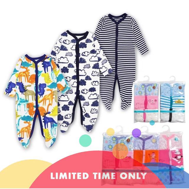 3 Pcs Baby Pyjamas Sleepsuit Newborn Jumpsuit Baju Tidur Romper