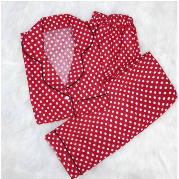 Baju Tidur Cewek Wanita Piyama Pajamas Katun Motif Polkadot Merah