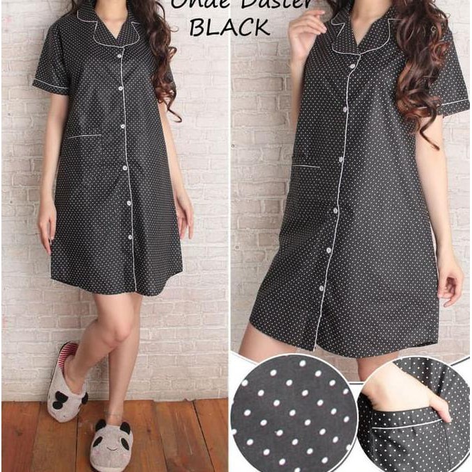 Harga Sexy Dress Daster Kemeja Baju Tidur 6115577 Polkadot Black